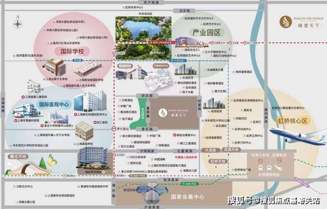 峰度天下位于上海虹桥商务区的南虹桥核心前湾板块,汇集国际高能配套,数字经济,生物医药,文创电竞三大产业布局,国际医学中心配置1个医技中心和7家高端医院,7所国际学校,3大超级商超,京沪高速,北翟高架,崧泽高架,嘉闵高架,沈海高速三横两纵交通路网,虹桥交通枢纽机场,高铁,地铁,公交,城际大巴等立体交通,13号线米),且有园区巴士早晚高峰直达虹桥高铁站,无限便利。