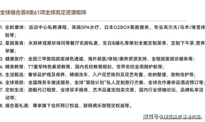 并链接8类61项全球尖端资源,从运动、教育、旅行、医疗等多维度,可谓把全球一线资源与全新生活方式注入古北99,对标国际高端生活标准。